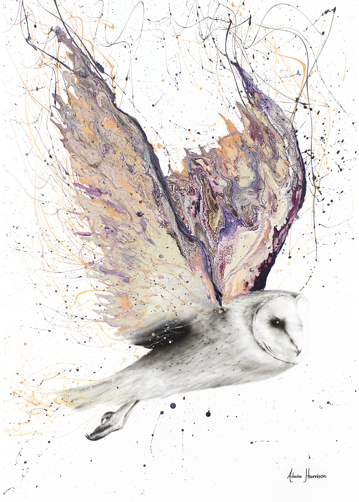Ashvin Harrison paints realistic artworks inspired by real life posing people and nature, photographs or imagination. Also, all original artworks have a charcoal dust element to them. This limited edition artwork is a mixture of printed black and white element with acrylics, acrylic medium thinners, acrylic medium flows and also mixing additives . This completely new made up approach to create art is a large part of Ashvin’s fast growing popularity in the art world.