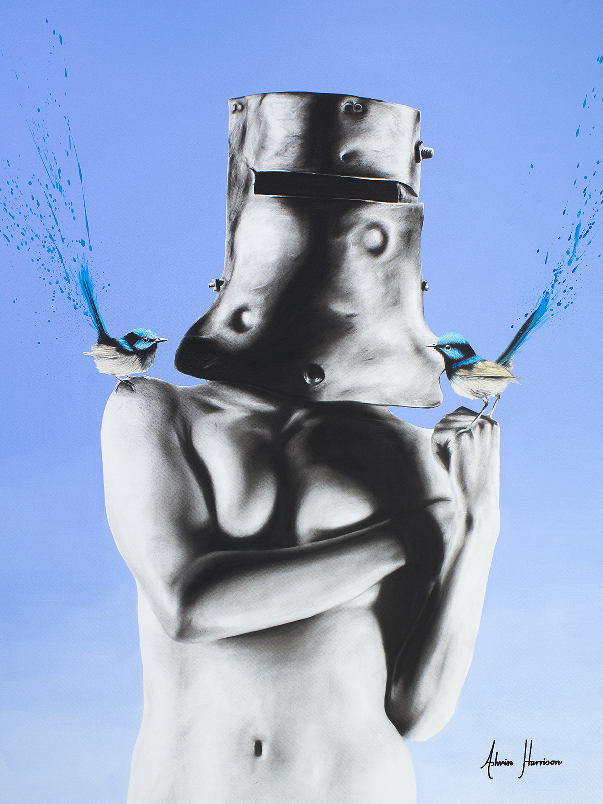 Ashvin Harrison paints realistic artworks inspired by real life posing people and nature, photographs or imagination. Also, all original artworks have a charcoal dust element to them. This limited edition artwork is a mixture of printed black and white element with acrylics, acrylic medium thinners, acrylic medium flows and also mixing additives . This completely new made up approach to create art is a large part of Ashvin’s fast growing popularity in the art world.