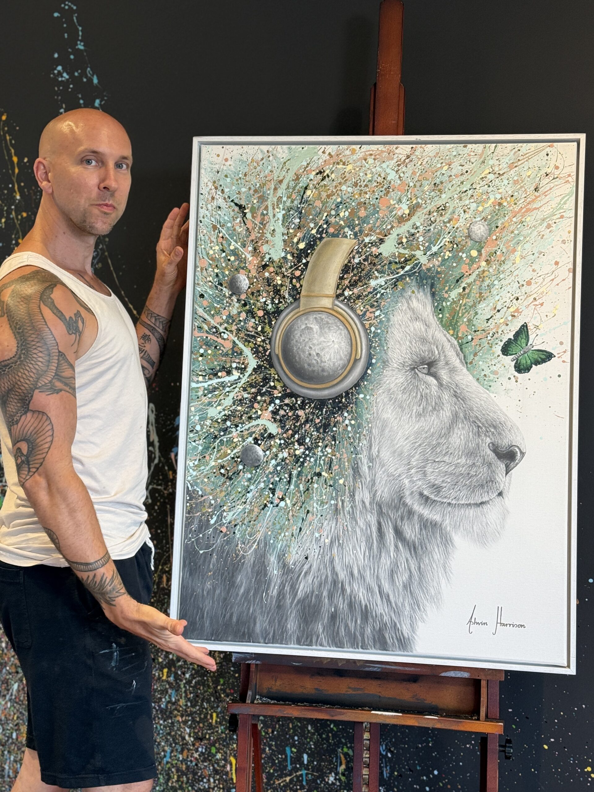 A rare opportunity to own the ORIGINAL Lunar Lion painting. This artwork has become available for purchase after being held in private collection for two years. The private art collector from Byron Bay, Australia needs to sell assets and unfortunately, even the much loved Lunar Lion original painting. I now have this artwork in my procession and can ensure the pristine condition after comprehensive inspection. This original has increased in value with a market value of $7,000 to $9,000 USD. Possibly even more considering this artwork’s limited edition prints are the most popular ever released. Please email art@ashvinharrison.com to enquire and acquire.