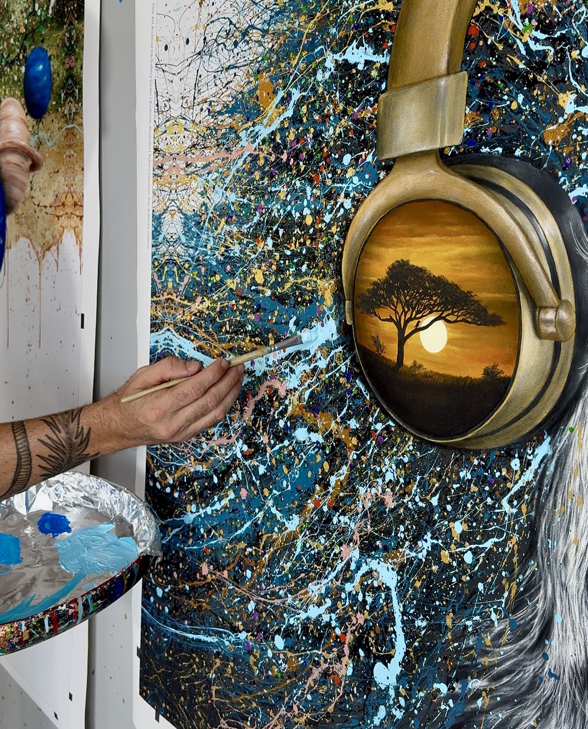 Individual hand-painted enhancements, including textured acrylic details and final expressive splashes.